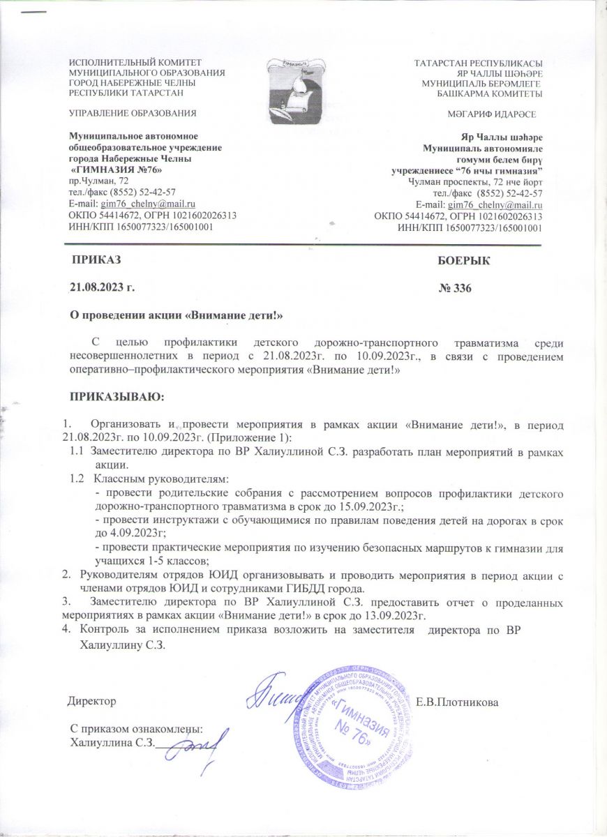 Приказ О проведении акции Внимание дети.jpeg План мероприятий по акции Внимание дети.