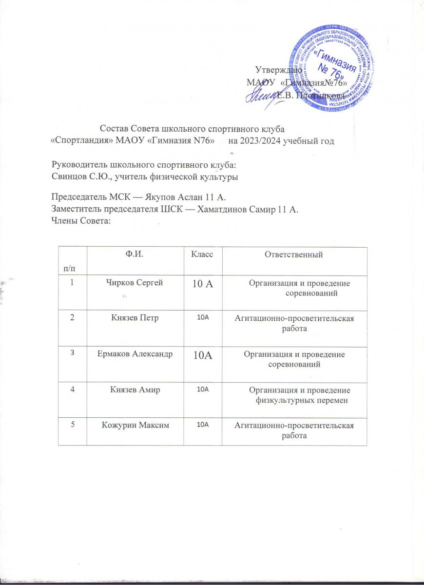 Свидетельство Школьного спортивного клуба Спортландия Гимназия 76.