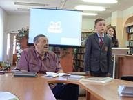 28 мая в центральной городской библиотеке нашего города прошла творческая встреча с писателем Михаилом Гоголевым, нашим земляком. Накануне, 27 мая, Михаил Николаевич отметил свое 65-летие, в библиотеке собрались его близкие друзья: поэты, писатели, художники и музыканты – круг творческой интеллигенции города. Отрадно, что среди приглашенных оказались ученики нашей гимназии. Не так давно Михаил Николаевич приезжал в школу, рассказывал о себе, о своем творчестве, ему понравились доброжелательные и креативные ребята, поэтому он решил пригласить их на свой праздник.