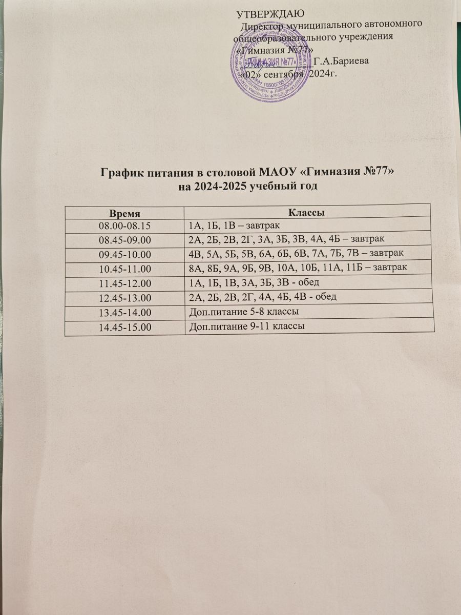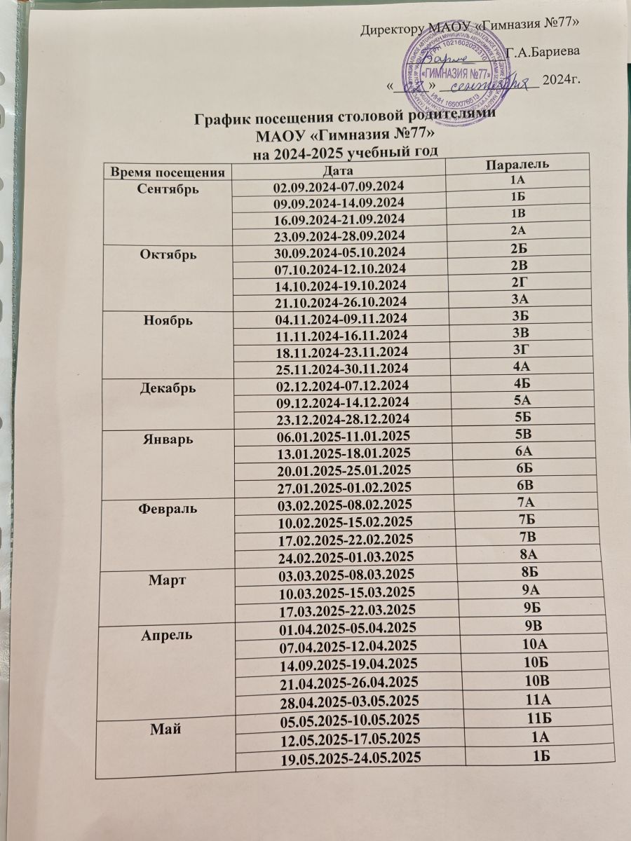 Сумма родительских взносов на питание учащихся МАОУ «Гимназия №77» с 02.09.2024: