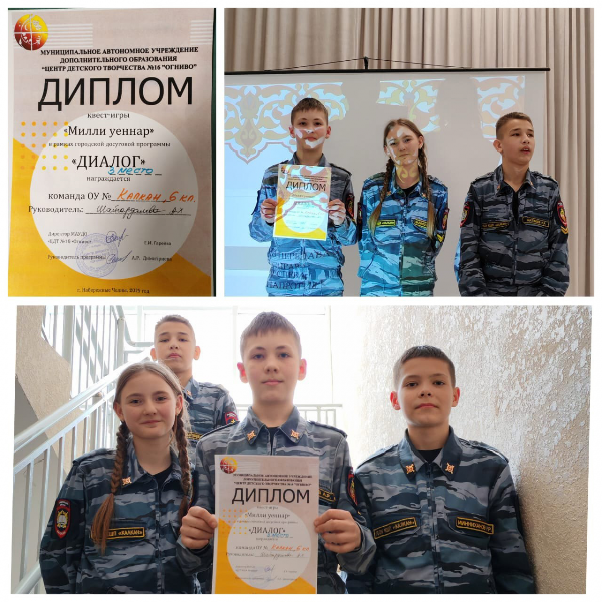 Диплом квест-игры "Национальные игры" в рамках городской досуговой программы " Диалог "6 б, молодцы!