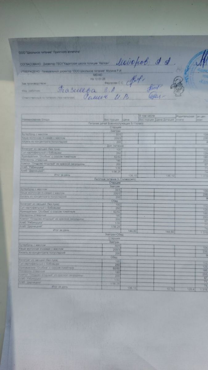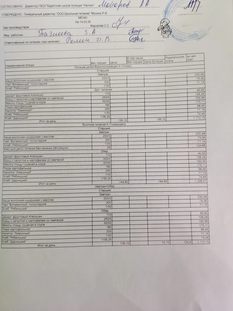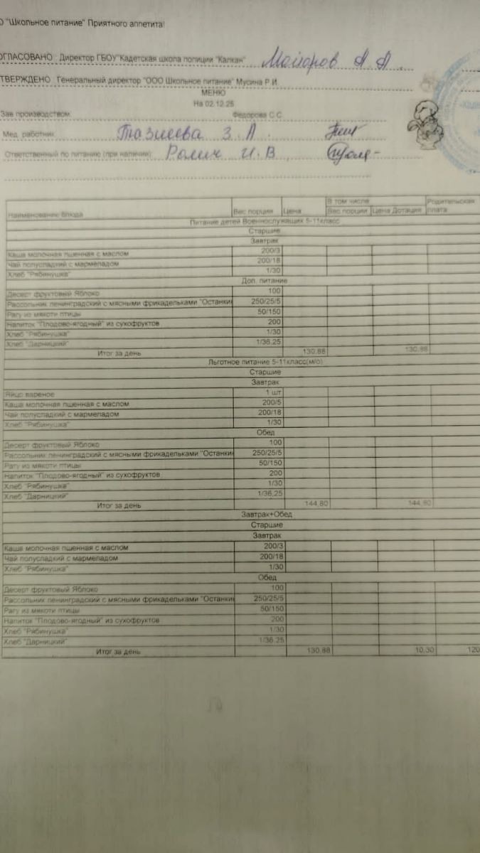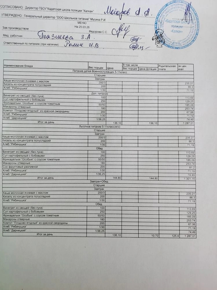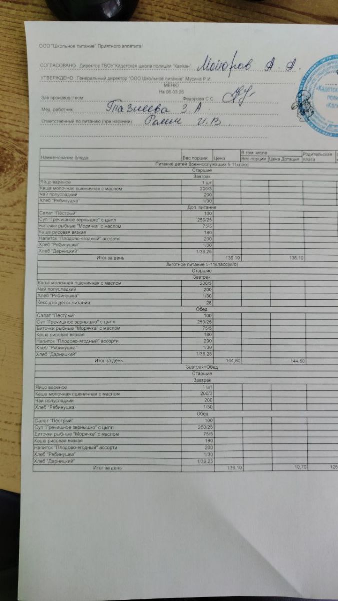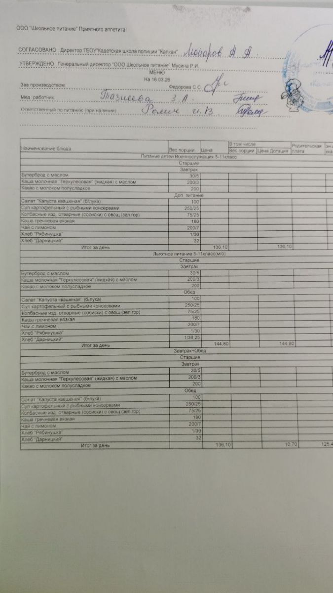 Ежедневное меню