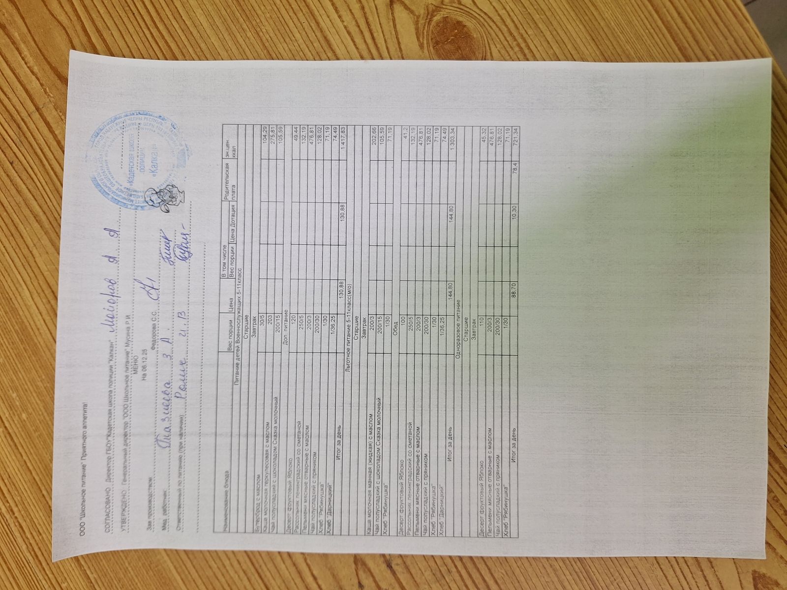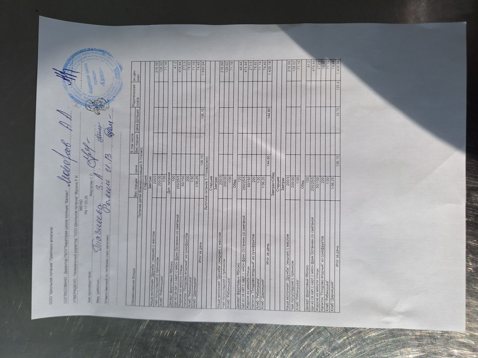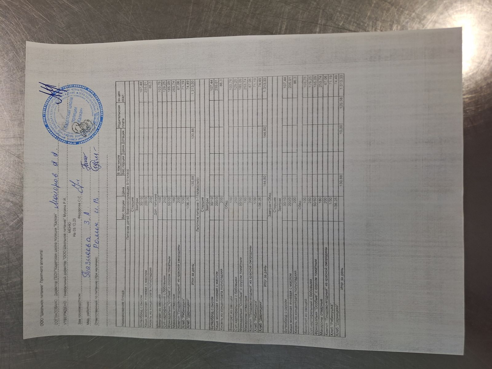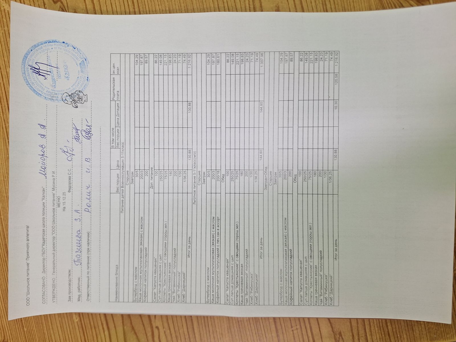 Ежедневное меню