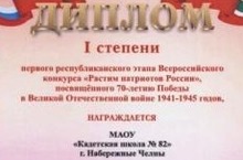«Кадетская школа №82» приняла участие в республиканских конкурсах «Растим патриотов России» и «Лучшая ветеранская организация по военно-патриотической работе в РКВВВС», посвященных 70-летию Победы в Великой Отечественной войне 14.02.2013