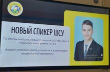 Подводя итоги выборов спикера ШСУ, можем поздравить нового спикера - Мугинова Романа, ученика 10а класса. Желаем ему успехов, здоровья и реализации его планов на новом посту.