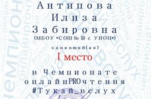 Поздравляем нашу учительницу Илизу Забирову, занявшую 1 место в конкурсе "Чемпионат онлайн чтений Тукая_вслух", посвященном Дню рождения Г. Тукая. Желаем ей успехов в дальнейшей работе!