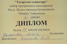"Татарстан хәзинәләре" шәһәр программасының "Моабит" бәйгесендә 3 дәрәҗә диплом белән бүләкләнүче Хөсәенова Лилияне котлыйбыз! Аңа алдагы эшләрендә уңышлар телибез!