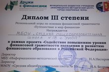 Команда 7В класса получила Диплом III степени на городской игре по финансовой грамотности для школьников «Путешествие в страну «Финансов». Игру 19.02.2020г. провела средняя общеобразовательная школа № 10 при поддержке МБУ «ИМЦ».