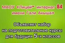 МАОУ "Лицей интернат №84 имени Гали Акыша" объявляет набор на подготовительные курсы для будущих 5-ых классов. Запись по телефону: 8(8552)58-51-31
