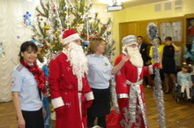 На новогоднее представление для 1-4 классов приходил милицейский Дед Мороз. Он поздравил детей с Новым годом и подарил новогодний сладкий подарок.
