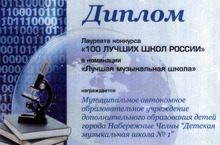 Детская музыкальная школа № 1 города Набережные Челны получила Золотую медаль конкурса «100 лучших школ России», войдя в список лучших музыкальных школ страны по данным Международной Академии Качества и Маркетинга.