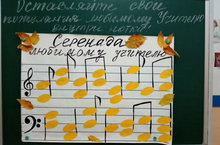 Акция "Поздравь учителя"в самом разгаре! Учащиеся ДМШ №3 с большим энтузиазмом отнеслись к акции. Поздравления и пожелания своим дорогим и любимым учителям постепенно заполняют наш импровозированный нотный стан.