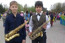 Учащиеся школы Шукюров Аскар, Третьяк Никита и Баранова Валерия (преподаватель Павлищева Л.Ю.) приняли участие в концертной программе, посвященной 1 Мая, которая состоялась в парке "Победа".