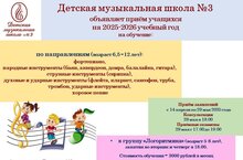 Детская музыкальная школа №3 объявляет прием на новый 2025-2026 учебный год.