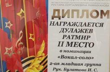 Поздравляем Дулажева Ратмира и его педагога Булатову Ирину Сергеевну с победой в XXV Ежегодном открытом Республиканском телевизионном молодежном фестивале эстрадного искусства "Созвездие-Йолдызлык"!!!