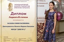 Поздравляем Балаеву Софию и её преподавателя Малюта Марину Павловну с отличным результатом в I Международном конкурсе пианистов им.В.В.Нильсена.