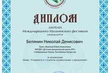 Поздравляем лауреата Международного Маланинского фестиваля учащегося 4 класса Белянина Николая (кл.преп. Ивановой Ю.А.) в номинации "Баян.Учащиеся и студенты музыкальных учреждений".