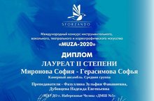 Инструментальный дуэт: Миронова София, Герасимова Софья – Лауреат II степени (кл. преп. Фазуллиной З.Ф., Дубовцевой Н.Е.)