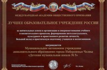 ДМШ №5 - обладатель Всероссийской Национальной Премии «Профессионалы - гордость России» в номинации «Лучшее образовательное учреждение России»...
