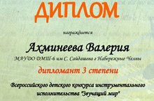 Ахминеева Валерия - дипломант Всероссийского конкурса инструментального исполнительства "Звучащий мир"!