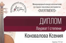 Коновалова Ксения - победитель Международного конкурса исполнителей на струнно-смычковых инструментах "Divertimento"!