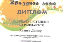 Диплом лауреата I степени. Номинация: Хореография. Эстрадный танец