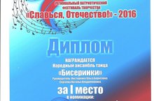 Вчера во дворце культуры «КАМАЗ» состоялся гала концерт Регионального патриотического фестиваля творчества «Славься, Отечество!»-2016, где учащиеся нашей школы, классы преподавателей Нестеренко Ольги Борисовны и Сергеевой Натальи Владимировны, достойно выступили. Были удостоены 1 места. В концертной программе учащиеся исполнили хореографическую композицию «Все для Победы!». Так держать!