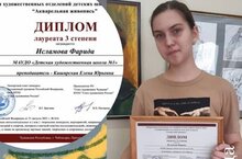 Диплом за активное участие вручили Кириловой Надежде Михайловне, преподавателю Детской художественной школы №1. -