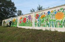 Преподаватели Детской художественной школы № 1 расписали стену у Колокольного моста к празднику Ивана Купалы. 04.07.2017