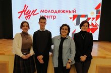 Ведущей мероприятия стала по традиции Разиля Кузнецова, специалист по работе с молодёжью МЦ "Нур", руководитель клуба "Интеллект", входящий в Международную ассоциацию клубов "Что? Где? Когда?" (на фото со студентами) -