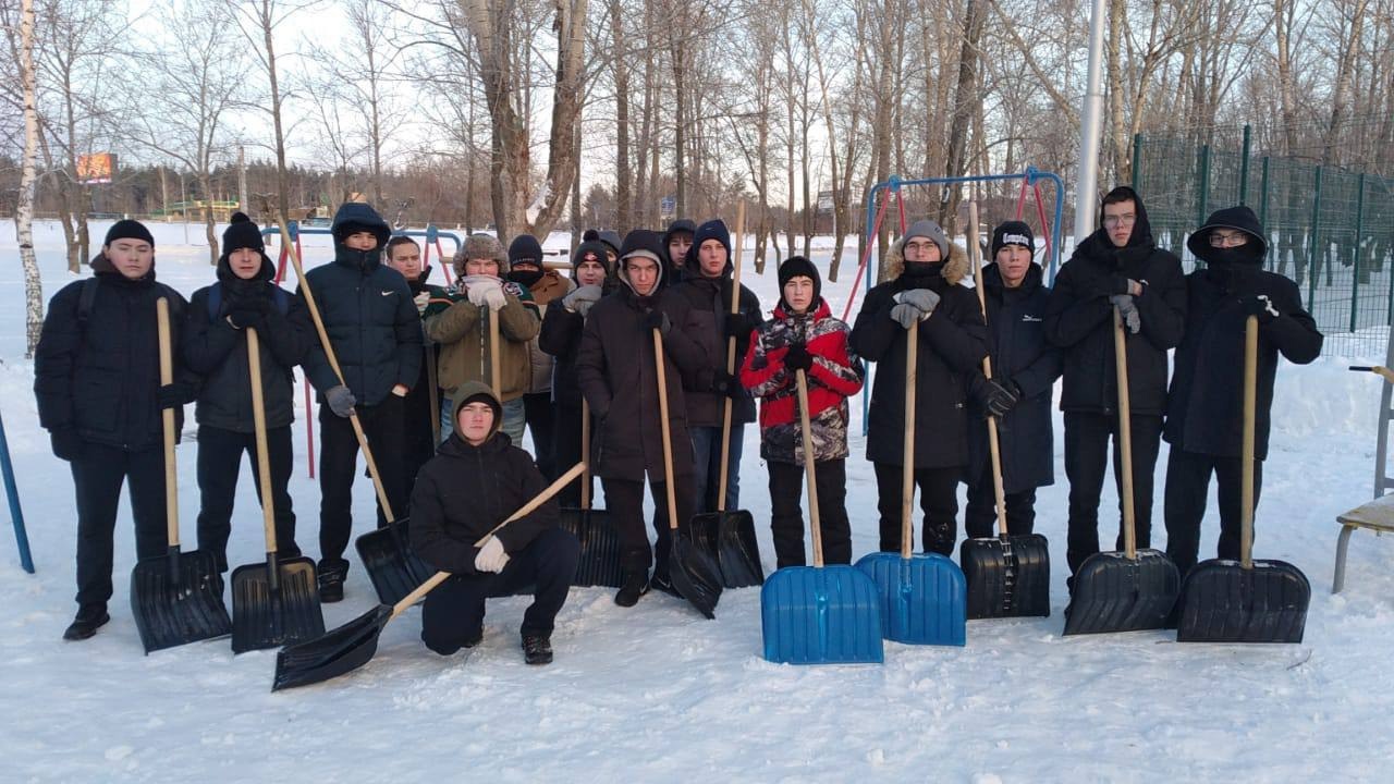 Студенты группы 321 Н вместе с преподавателем Хамзетяновой Гузель Насыховной чистили снег в парке Сидоровка