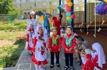С самого утра двор детского сада преобразился. Разноцветные ленты, шары, самотканые полотенца украшали территорию, создавая неповторимую атмосферу татарского народного гулянья.