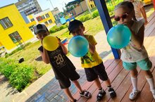 В детском саду "Белоснежка" царит атмосфера легкого, воздушного праздника. Сегодняшний день посвящен развитию дыхательной системы маленьких непосед. И как же здорово совместить полезное с приятным! Маленькие щечки надуваются, словно спелые яблоки, а в глазах сверкает упорство. "Фух!" - вырывается с усилием, и шар медленно, но верно увеличивается в размерах, приобретая округлые формы. Гордость переполняет маленького "надувальщика", когда шар, наконец, готов к полету. Но на этом веселье не заканчивается. Воспитатели достают волшебные флаконы с мыльным раствором и специальные колечки. Начинается настоящее шоу мыльных пузырей! Легкие, переливающиеся всеми цветами радуги сферы вылетают из колец, плавно паря в воздухе. Надувание шаров и мыльных пузырей – это не просто забава. Это отличная тренировка для легких, развитие дыхания и координации движений. А главное – это радость и веселье, которые делают процесс обучения легким и увлекательным для маленьких воспитанников детского сада "Белоснежка".