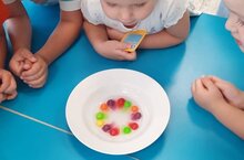 В рамках реализации проекта “STEAM-klassa “Калейдоскоп» в МБДОУ №130 в младшей группе №1 был проведён чудесный опыт со «Скитлс». -