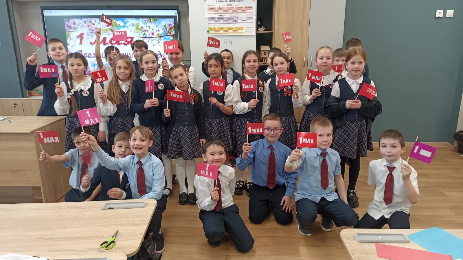 1 мая - Праздник Весны и Труда! Этот день считается символом весны и уважения к созидательному труду. В честь паздника Весны и Труда учащиеся 1 "А" класса сделали своими руками открытки из пластилина, учащиеся 2 и 3 классов сделали праздничные первомайские флажки и поздравили всех с наступающим праздником.