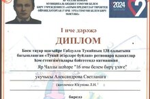 "Тукай әсәрләре буйлап" регионара плакатлар һәм стенагазеталар бәйгесенең нәтиҗәләре буенча 6Г сыйныф укучысы Александрова Светлана (җитәкчесе Юсупова Л.Н.), 3А сыйныфы укучысы Гимазетдинова Айгөл (җитәкчесе Мортазина Ф.К.) 1 нче дәрәҗә дипломга лаек булдылар.