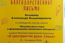 Мастер-класс «Ведущая роль семьи в формировании шахматного интереса» 18.04.2019