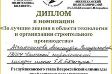 2 и 3 апреля на базе ГАПОУ «Нижнекамский политехнический колледж имени Е.Н. Королева» прошёл Республиканский этап Всероссийской олимпиады профессионального мастерства обучающихся по специальности среднего профессионального образования 08.02.01 "Строительство и эксплуатация зданий и сооружений".