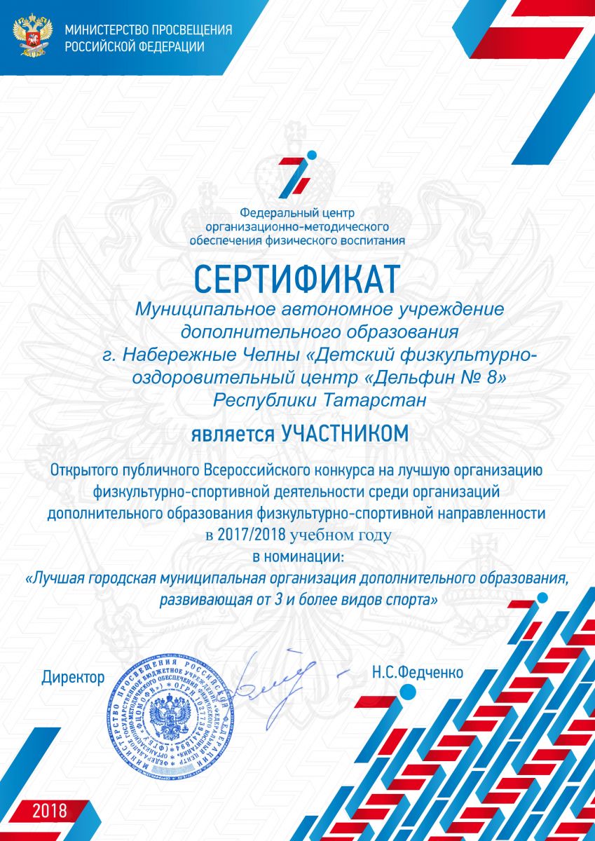 ДФОЦ "Дельфин №8" - участник Всероссийского заочного конкурса среди организаций дополнительного образования физкультурно-спортивной направленности по итогам работы за 2021/2022 учебный год