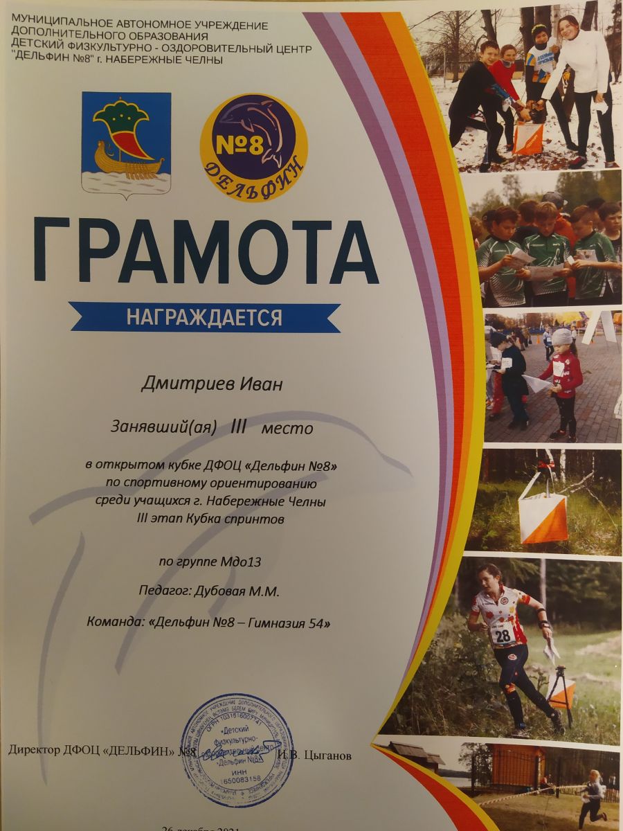 Дмитриев И - 3 м, Казарина А - 3 м, Нейчева У - 2 м в Открытом Кубке ДФОЦ "Дельфин №8" по спортивному ориентированию, III этап (26.12.2021)