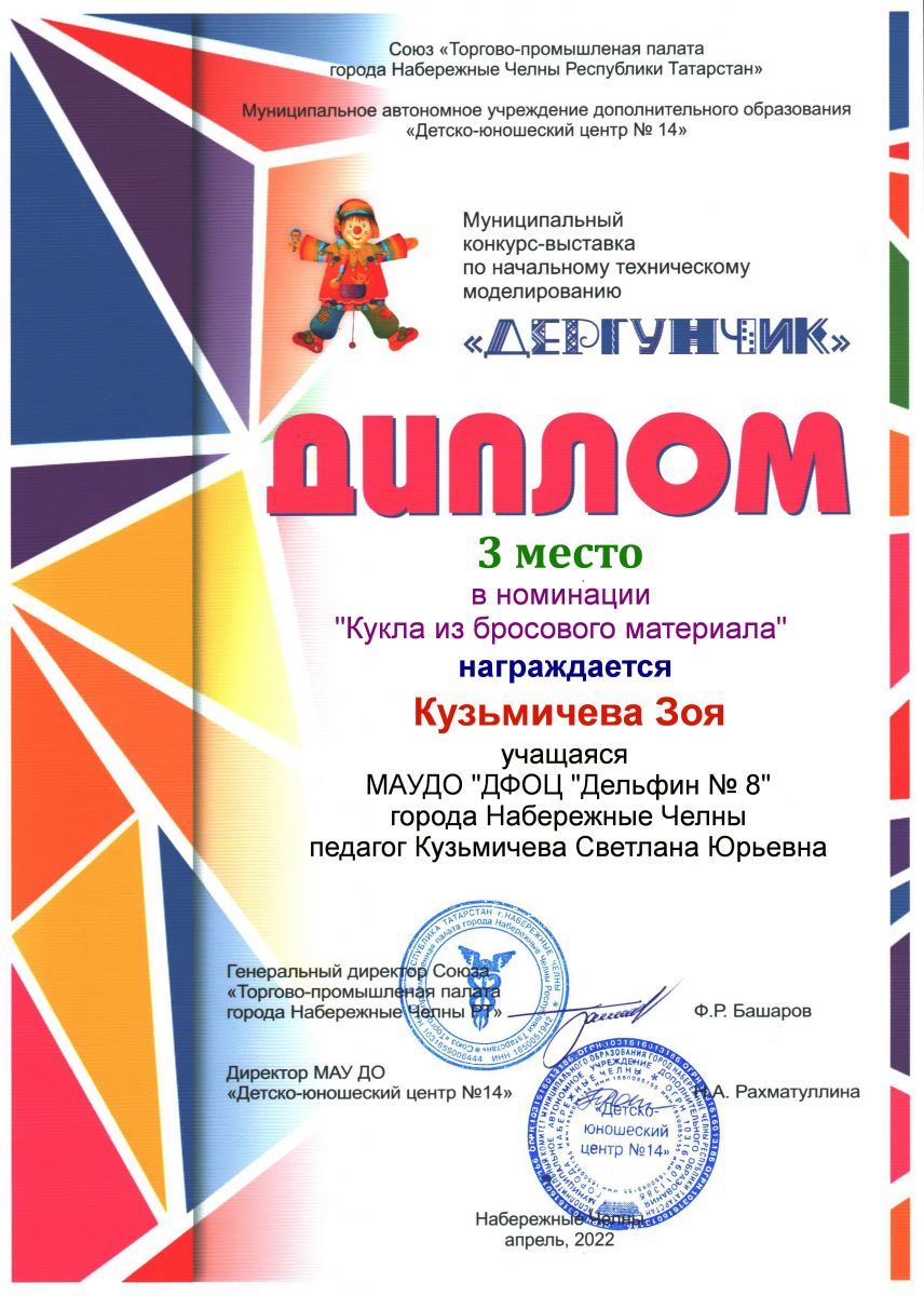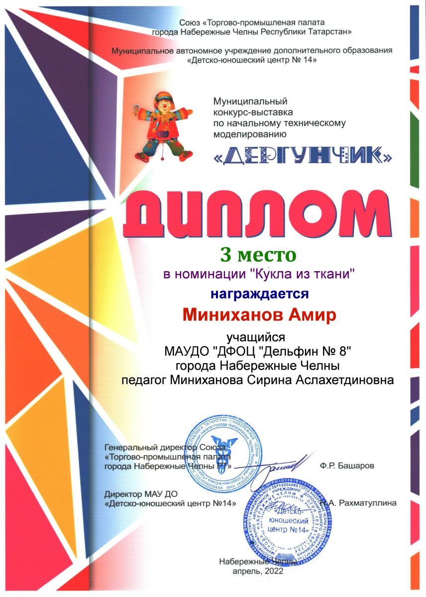 Кузьмичева З. - 3 м, Миниханов А. - 3 м в Муниципальном конкурсе-выставке по начальному техническому моделированию "Дергунчик" (25-29.04.2022)