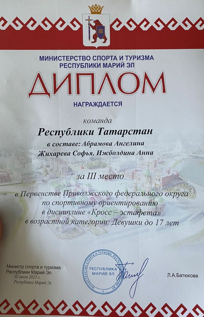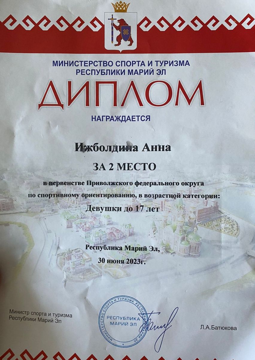 Галиев Виктор 2 место, Ижболдина Анна 2 место, Женская команда (до 15 лет) 2 место, Мужская команда (до 15 лет) 3 место, Женская команда (17 лет) 3 место в Первенстве ПФО по спортивному ориентированию (30.06.2023)