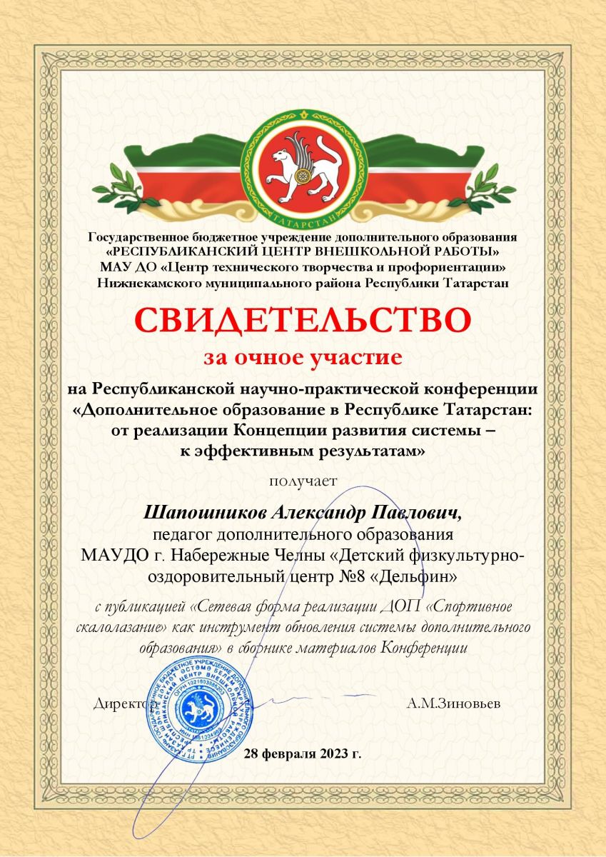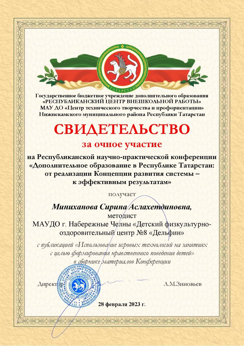 Ильина Г.Ф., Гильванова Н.А., Миниханова С.А., Шапошников А.П. - приняли участие в Республиканской научно-практической конференции "Дополнительное образование в Республике Татарстан: от реализации Концепции развития системы - к эффективным результатам" (28.02.2023 г.)