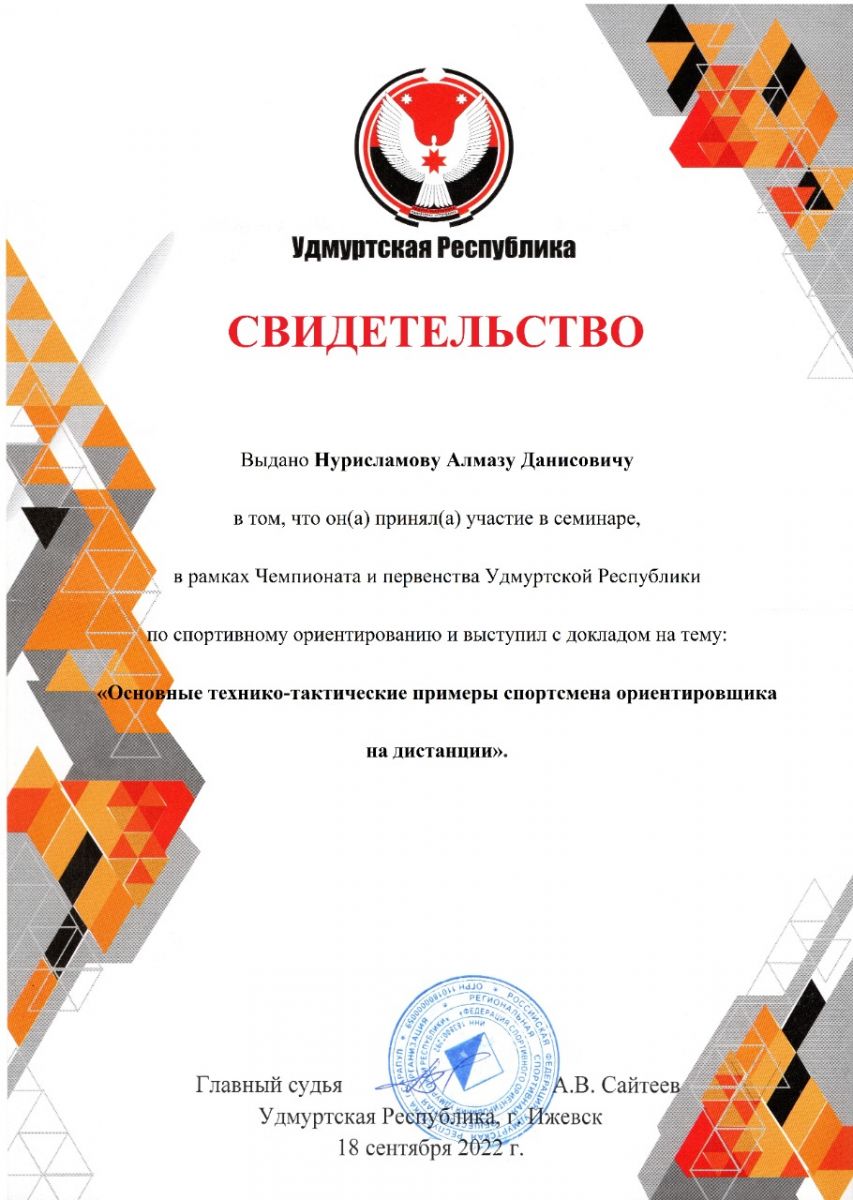 Нурисламов А.Д., Самарин И.В. - приняли участие в семинаре в рамках Чемпионата и Первенства Удмутской Республики по спортивному ориентированию (18.09.2022 г.)