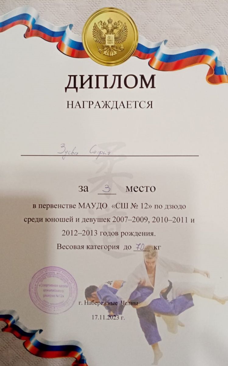 - Фаткуллина Ясмина 2 место, Зуева Софья 3 место в Первенстве СШОР №12 по дзюдо (17.11.2023)