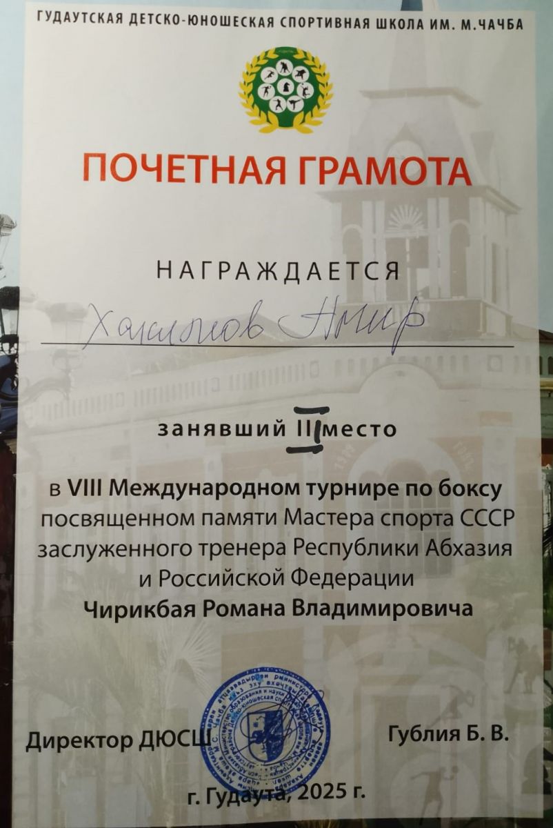 Хакимов Амир 3 место в VIII Международном турнире по боксу, посвященном памяти МС СССР, ЗТР России и Республики Абхазия Чирикбая Р.В. (02-05.05.2025)