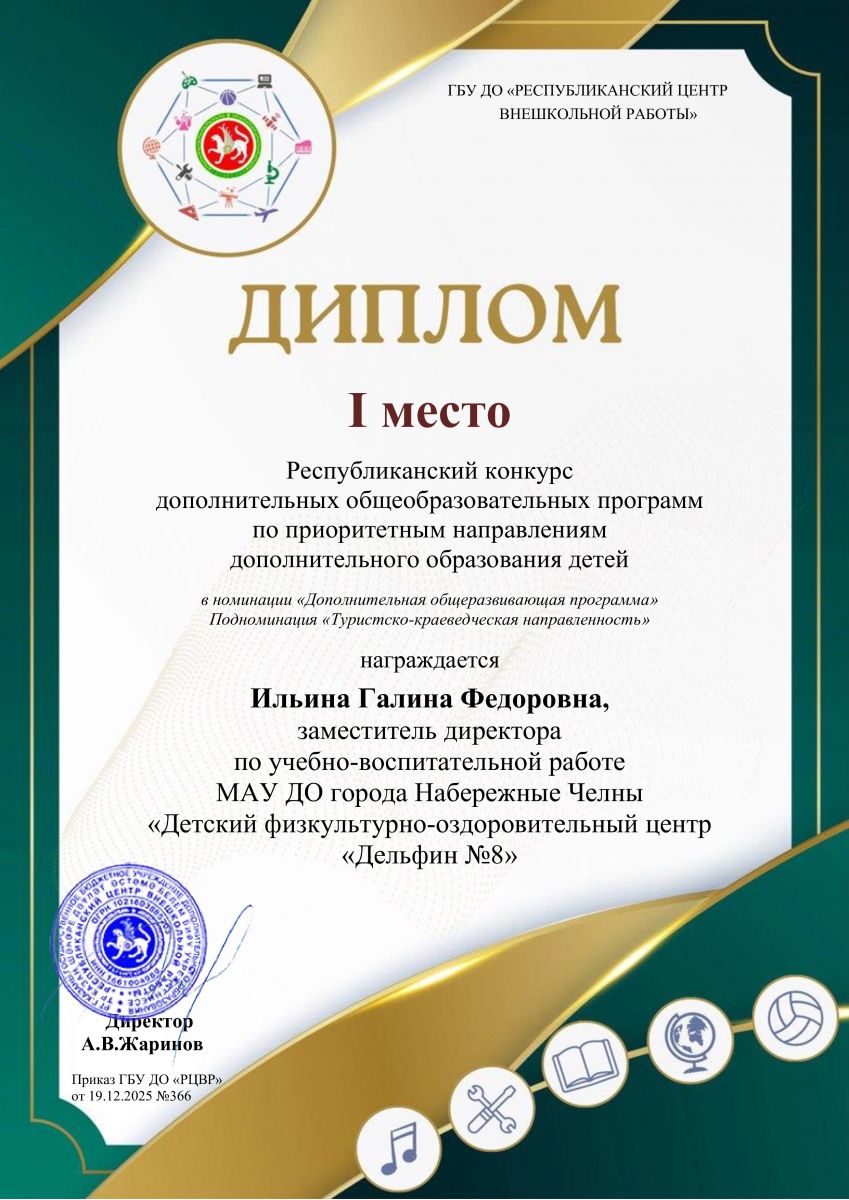 • Ильина Г.Ф. - 1 место, Дубовая М.М. - 1 место в Республиканском конкурсе дополнительных общеобразовательных программ по приоритетным направлениям дополнительного образования детей. (Приказ от 19.12.2025 № 366)