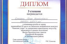 23 апреля 2018 года состоялся отборочный тур Закамского регионального конкурса декоративно-прикладного искусства «Камские узоры», где наш педагог Ермолаев П.М. принимал участие в номинации резьба по дереву и занял 3 место!Наши поздравления Петру Михайловичу!Так держать!