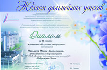 С гордостью поздравляем нашего преподавателя рисунка, живописи и станковой композиции Имангулову Резиду Ильдаровну со вторым местом в Республиканском профессиональном конкурсе педагогов дополнительного образования "Сердце отдаем детям" 03.02.2015