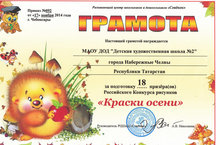 Российские развивающие центры Совенок и Радуга поздравляют Детскую художественную школу с 18 призерами творческого конкурса «Краски осени» и 4-мя призерами конкурса «Времена года» 04.12.2014